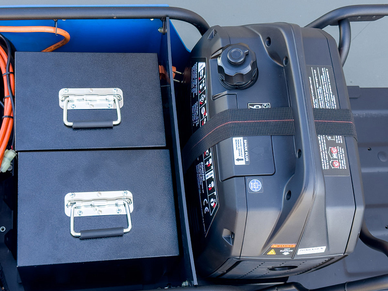 On-board generator allows you to charge the battery right on the move which makes it possible not to worry about the range that is up to 3 hours in combined mode.
