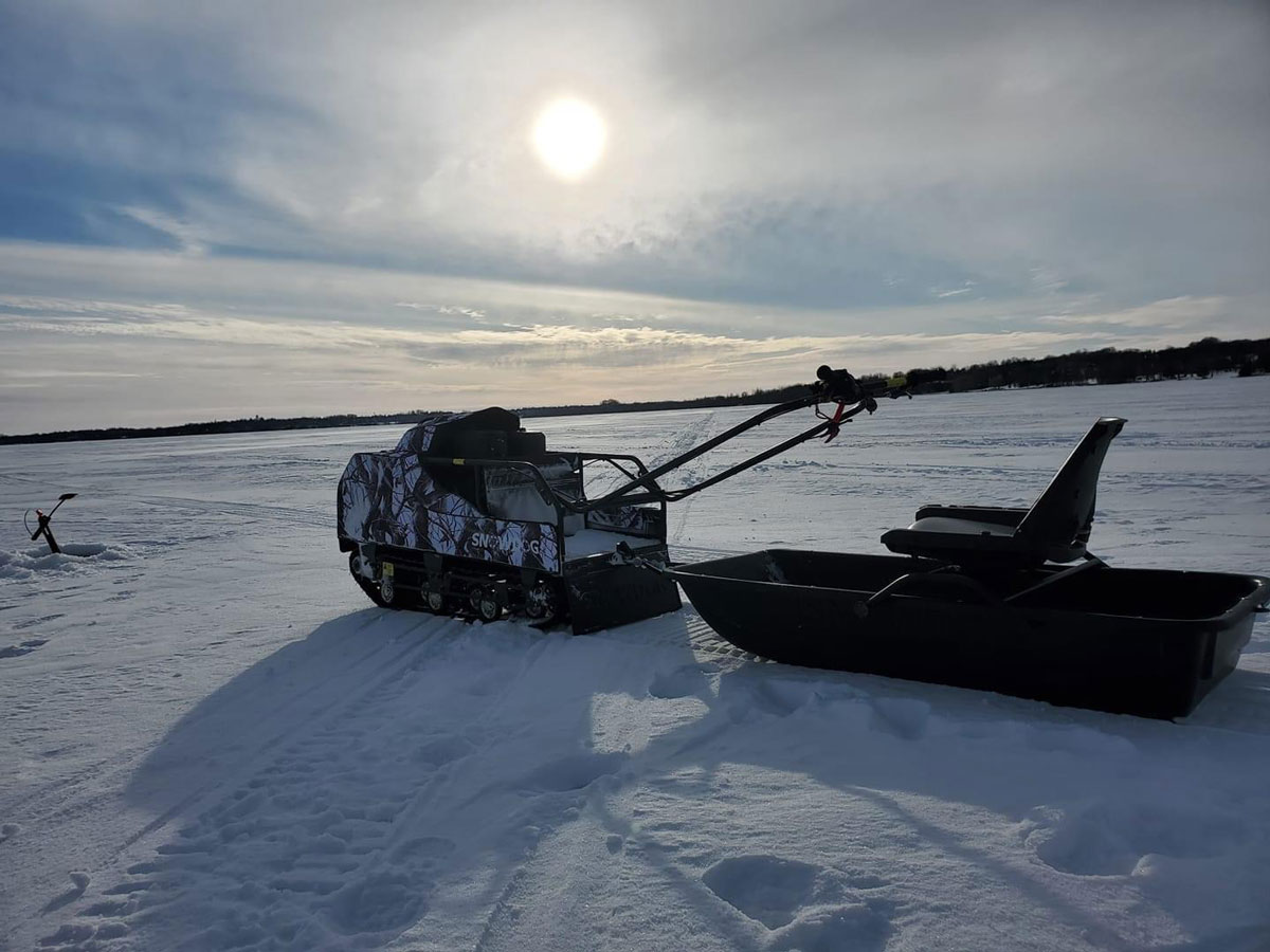 Udstyret med 13,5 hp Briggs & Stratton motor og CVT kan Snowdog drage slæder med vægt op til 200 kg på tør jord og meget mere på sne og is.