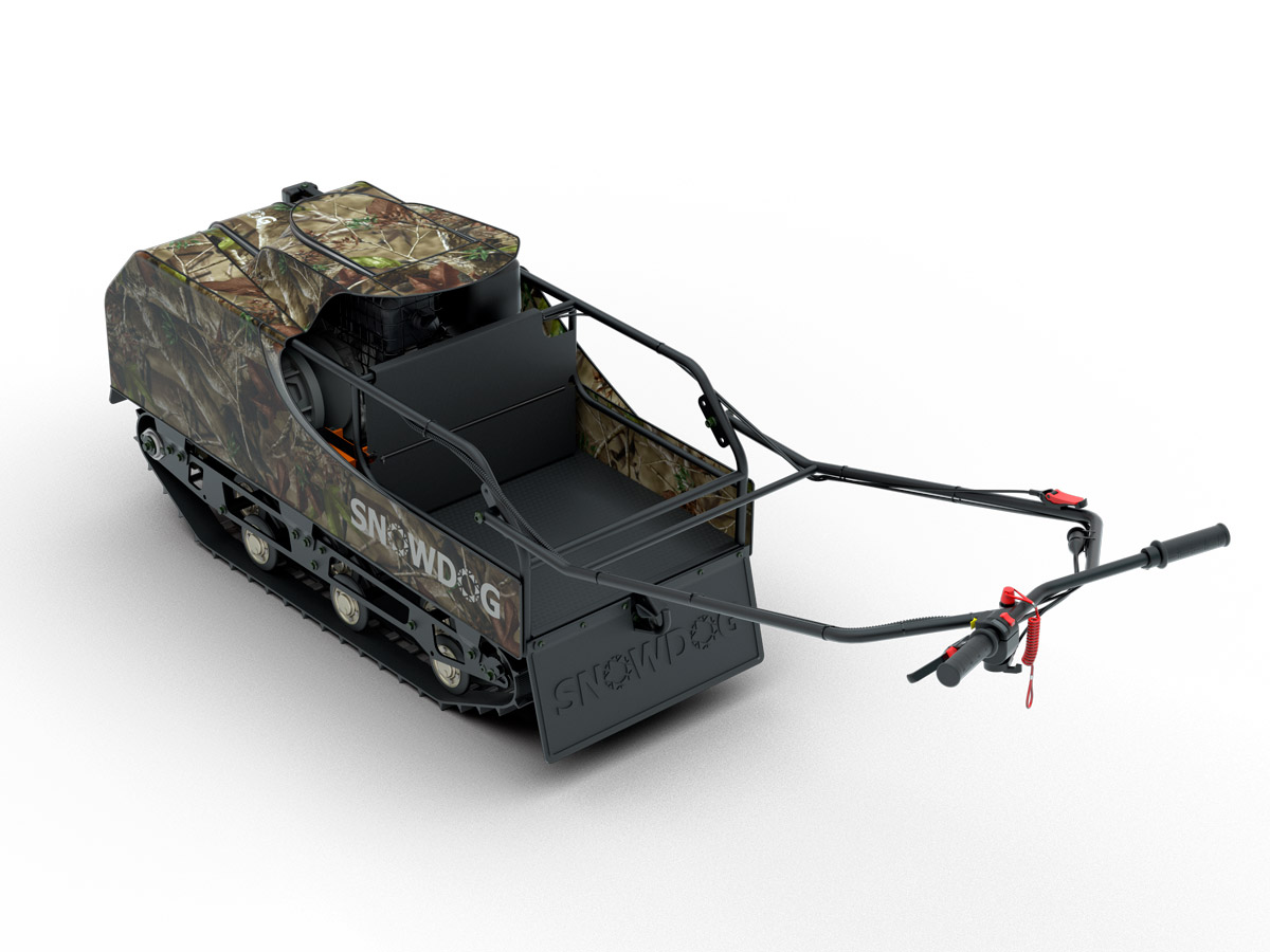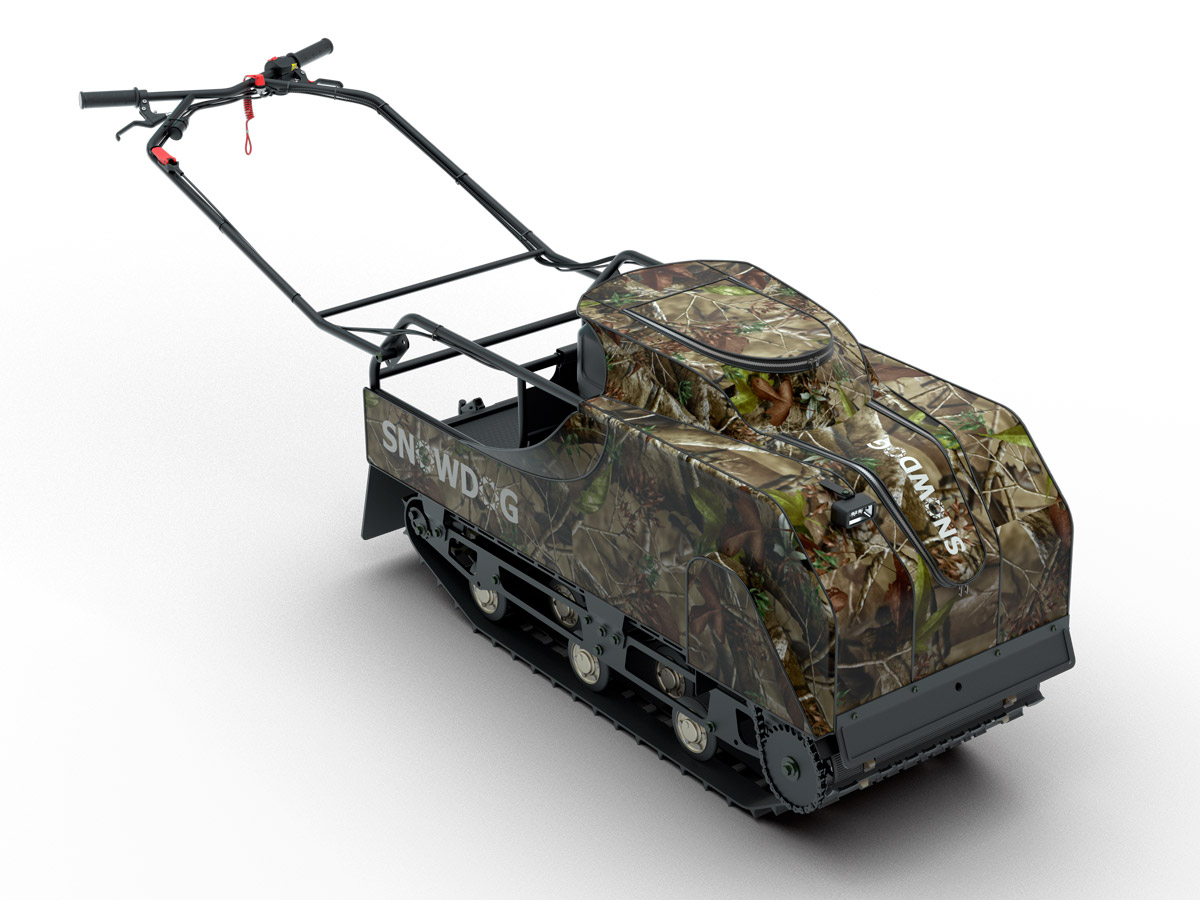 Dotato del motore Briggs & Stratton con 13,5 CV e del variatore, può trainare slitte con il peso fino a 200 kg sul terreno secco e con il peso ancora più alto sulla neve e ghiaccio.